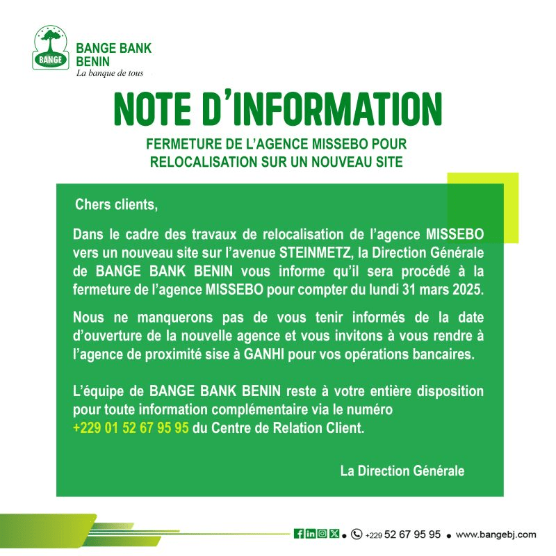 Tél. : +229 01 52 67 95 95